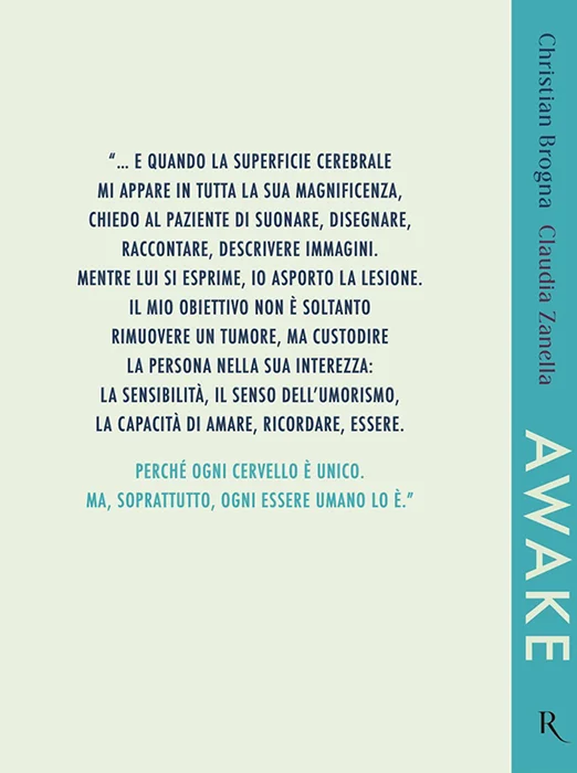 In Awake, ogni intervento diventa un’esperienza unica: il paziente partecipa attivamente all’operazione, dialogando con il chirurgo per preservare linguaggio, emozioni e ricordi. Attraverso casi reali e riflessioni profonde, Brogna e Zanella mostrano come la neurochirurgia moderna non sia solo scienza, ma anche ascolto, empatia e rispetto per la mente umana. Un libro che unisce ricerca neurologica, narrativa e filosofia della coscienza, offrendo una nuova visione del rapporto tra mente, cervello e identità.