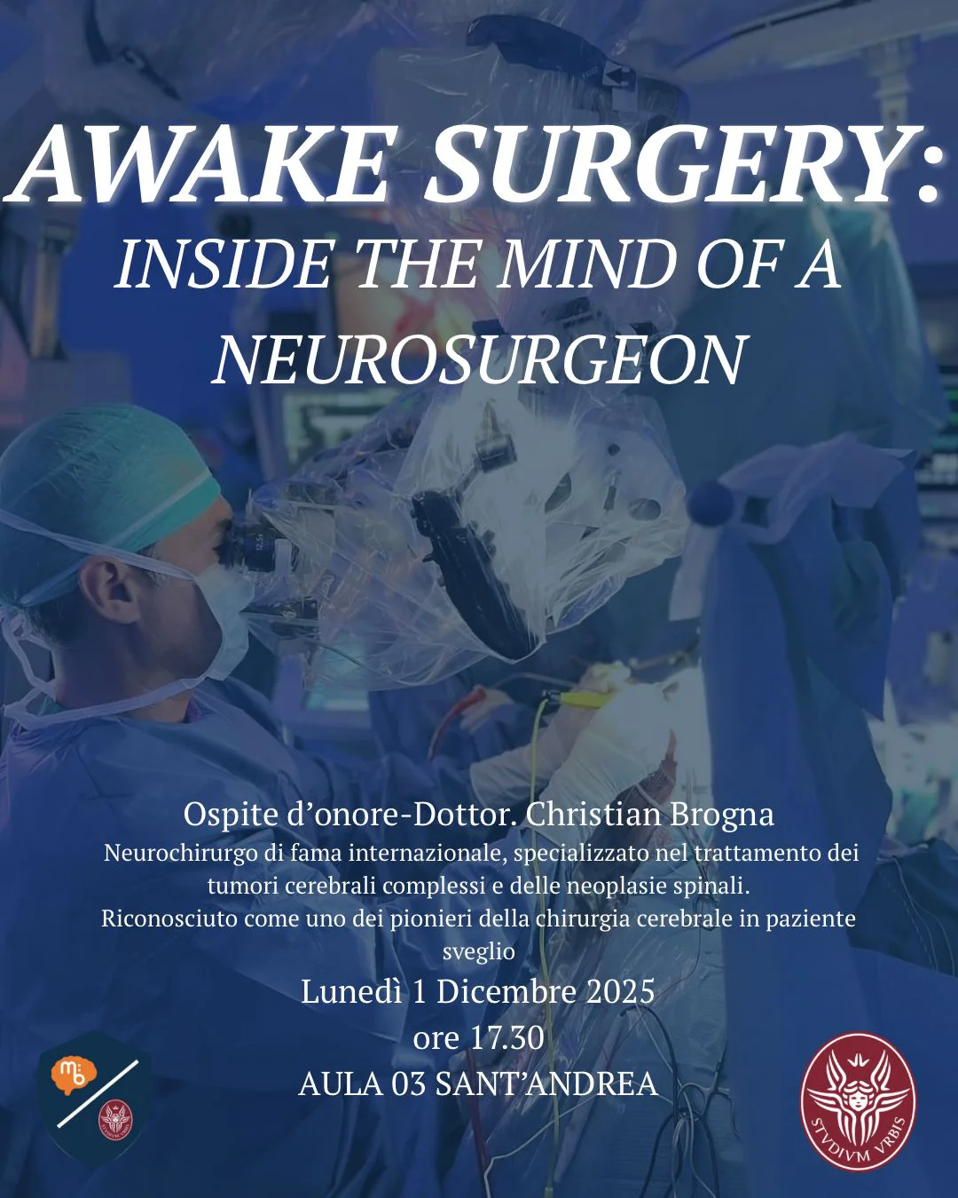 Dopo il successo editoriale di Awake, il neurochirurgo Christian Brogna e la scrittrice Claudia Zanella incontrano il pubblico in una serie di presentazioni in tutta Italia. Un’occasione unica per scoprire da vicino la pratica dell’awake surgery, ascoltare testimonianze reali e riflettere sul legame tra cervello, emozioni e identità umana.